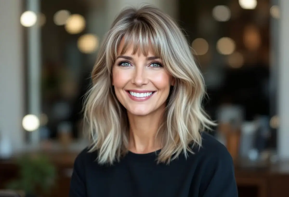 Pourquoi choisir une coupe mi-longs dégradé effilé avec frange à 50 ans ?